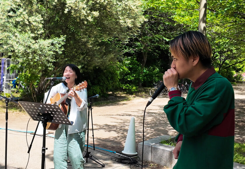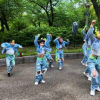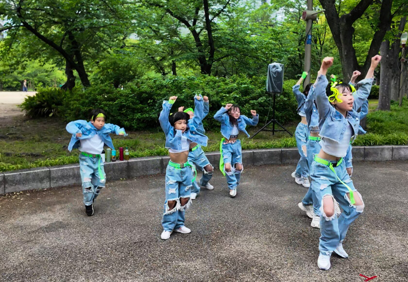 靱公園バラ祭の応援団長、東(ヒガシ)たかゆきさんの開会宣言の後は、3人組「ワン クロスオーバー」による、明るくてジャジーな楽曲が響くステージに続き「UTSUBO studio」CHISA先生率いるキッズダンスチームがバラ祭テーマソング『バラの街を あなたと歩きたい』ダンスバージョンのステージを繰り広げます。